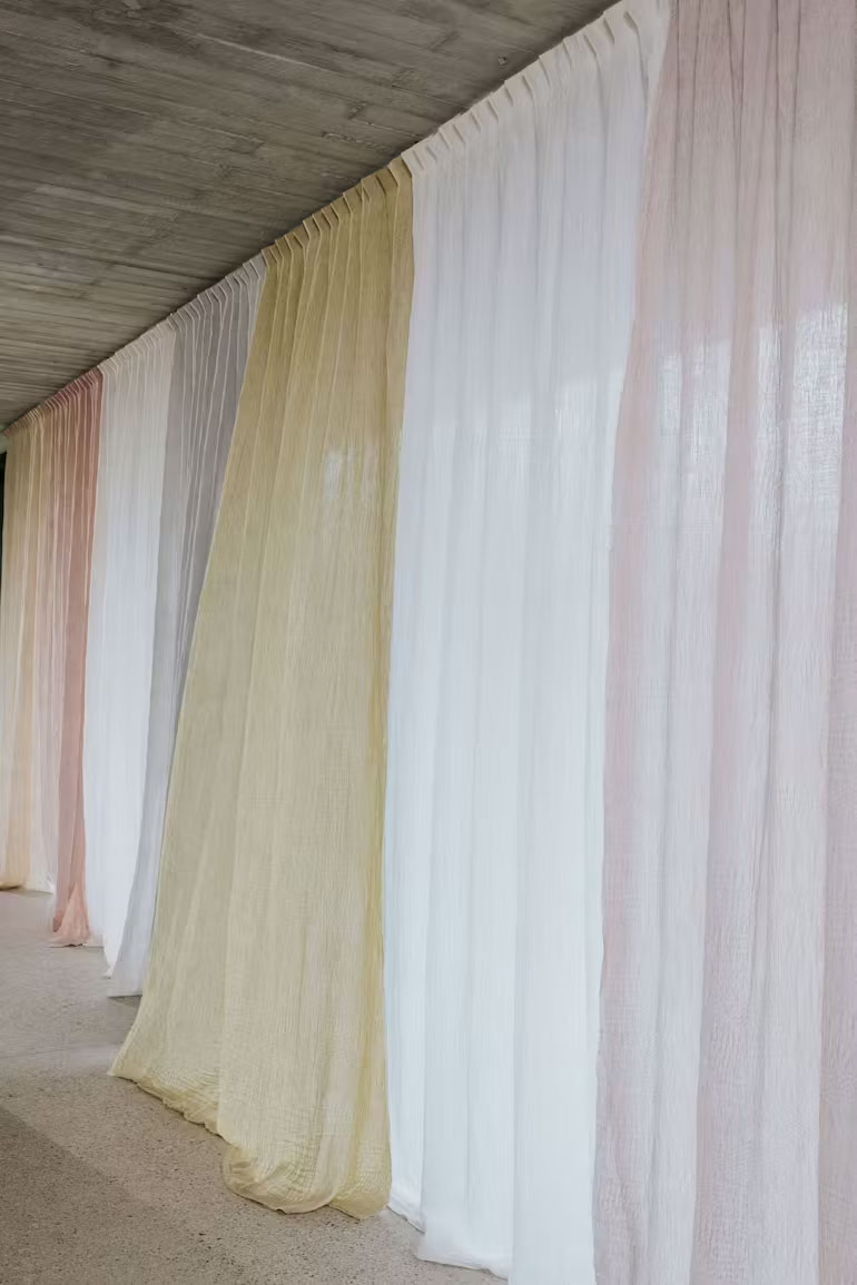 多くの加工過程を経て手間を惜しまずに生み出されるデザインズオブザタイムのリネン生地。糸の打ち込みにまでこだわり、素材の可能性を最大限に広げてゆきます。
