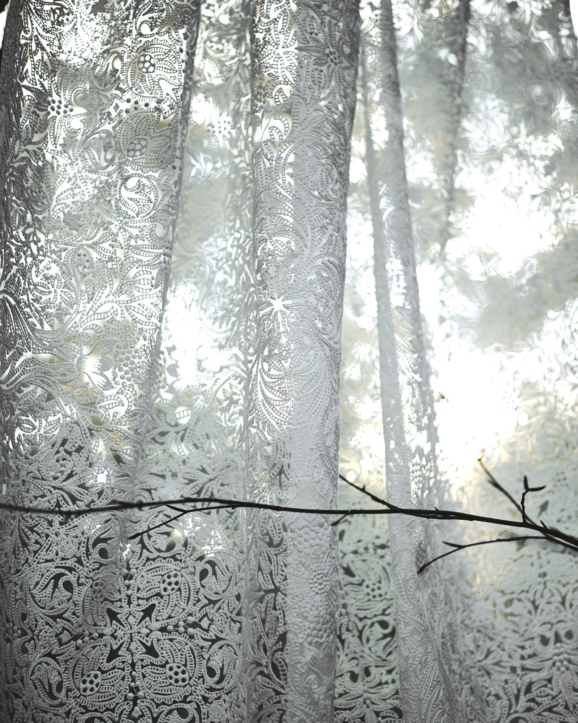 美しいレースや刺繍で表現されたモリスの柄で窓辺を彩る贅沢