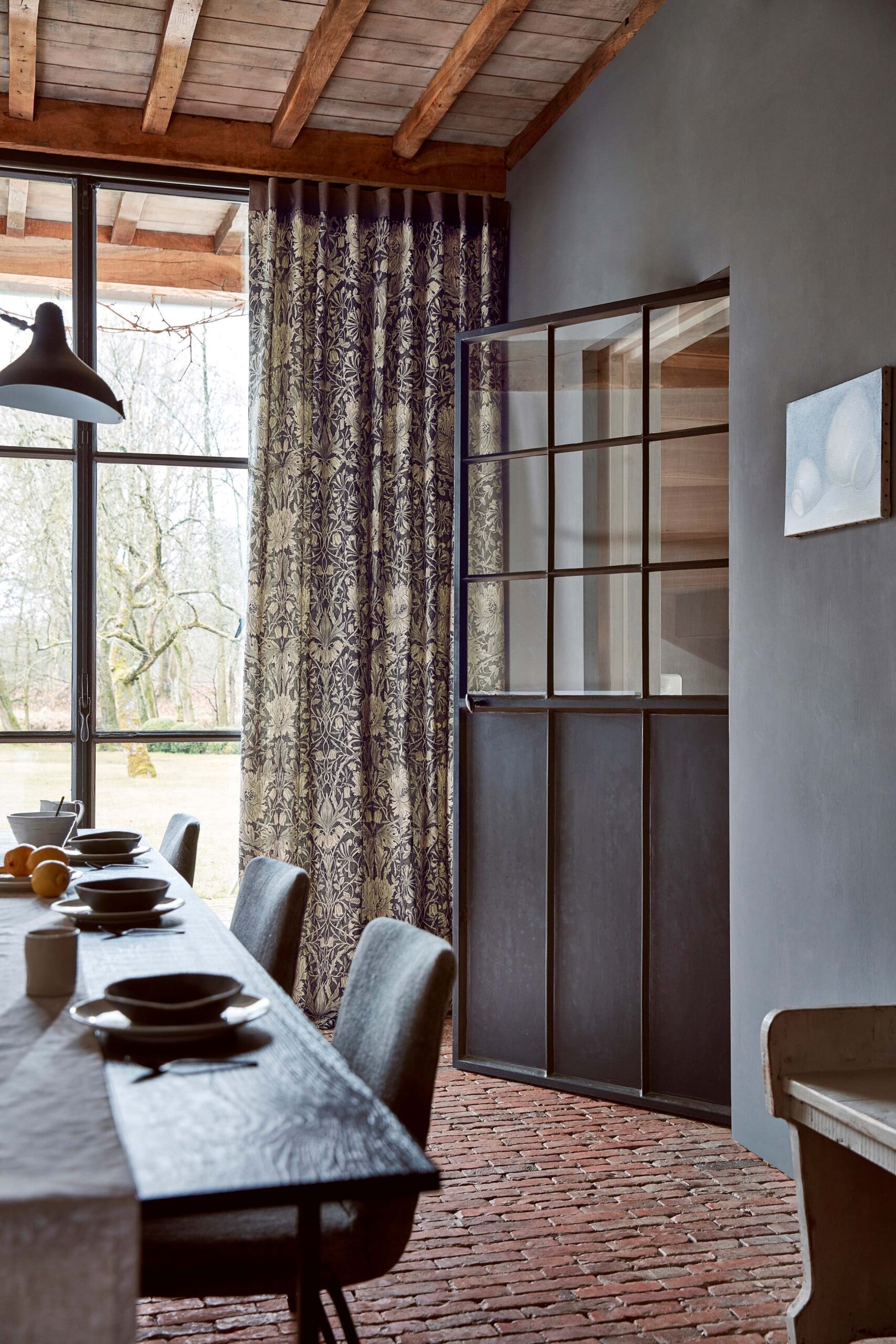 19世紀後半に起こったアーツ・アンド・クラフツ運動の頃に使われていた制作方法・ブロックプリント特有の滲みなどを表現したプリントや、当時使われていたインディゴ染めなどの深みのある色合いが特徴です。ウォールナットやチーク材の建具や家具とも相性抜群。王道のモリスを楽しみたい方や、和モダンなスタイルがお好きな方にオススメです。
