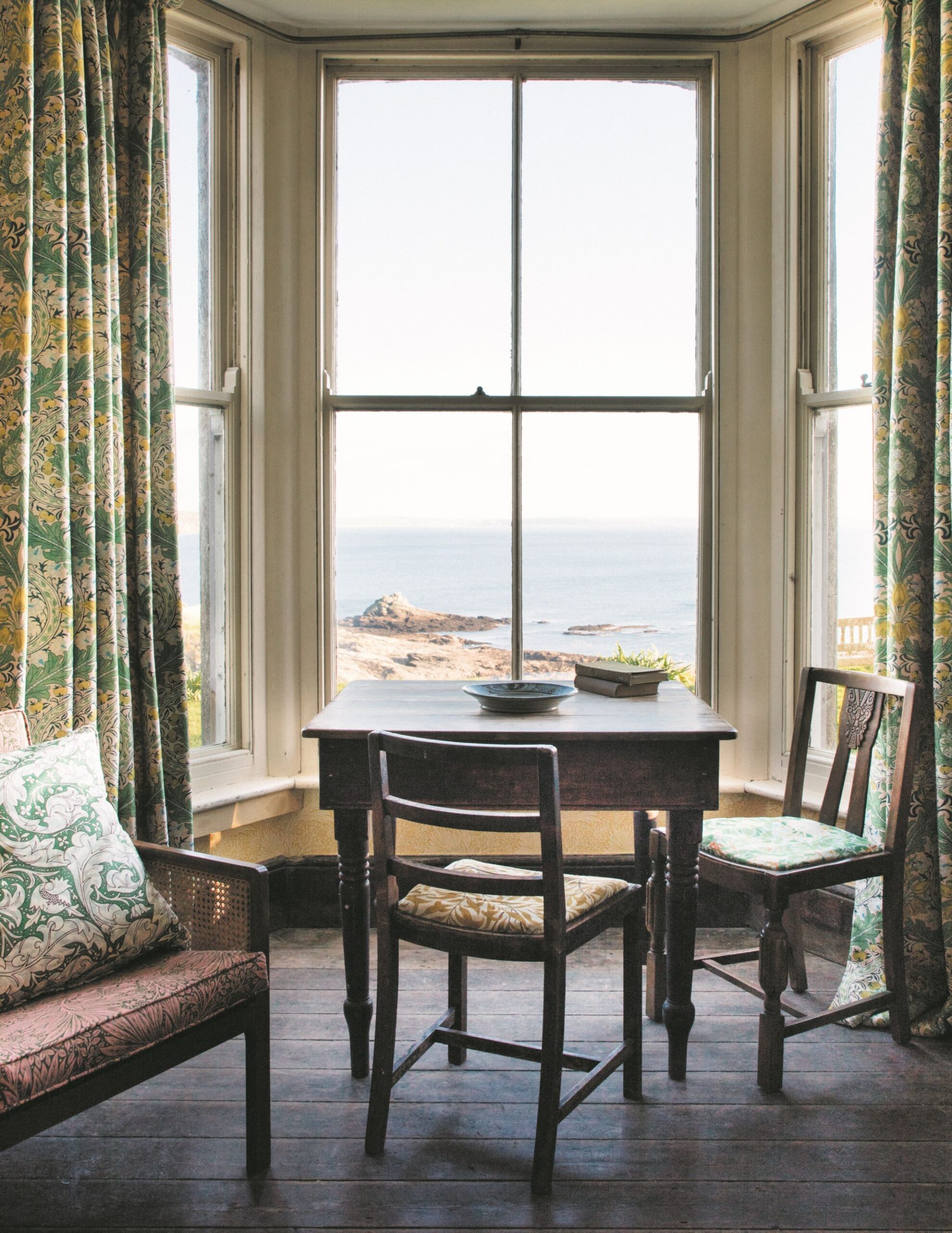 左/『イチゴドロボウ』のカーテンと『ケルムスコットツリー』のクッションがある窓辺の風景